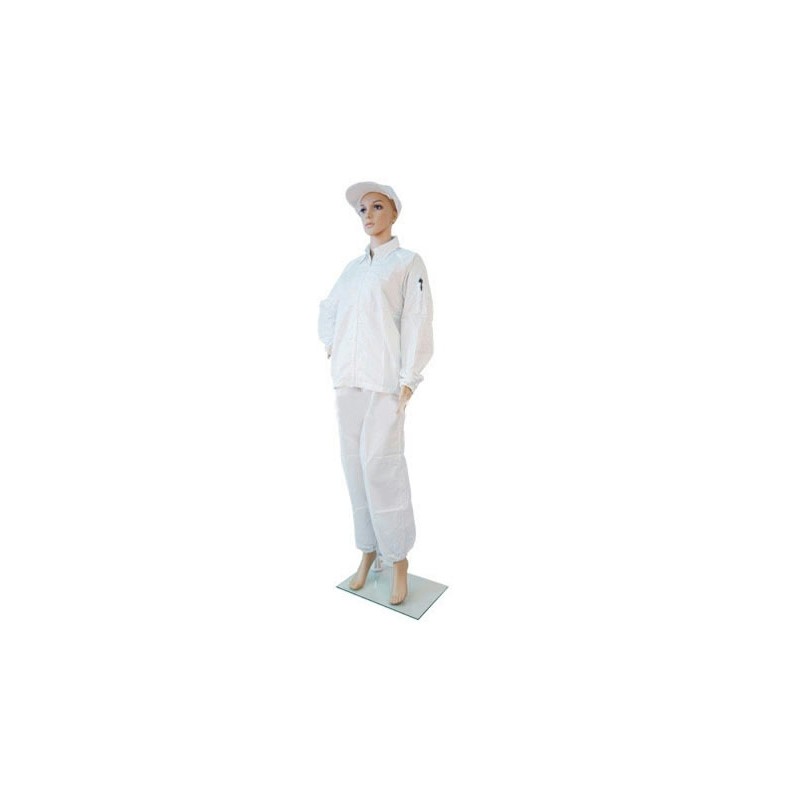 El material textil es tejido utilizando 98% de filamento de fibra de poliéster y 2% de fibra conductiva importada. Esta chaqueta se caracteriza por eliminar de manera efectiva la carga estática producida por el cuerpo humano. Además es un producto cómodo y fácil de lavar. Nuestra chaqueta antiestática consiste de una chaqueta y un pantalón. Ofrecemos tres estilos de material para este producto: tejido de 5mm o tejido de 2.5mm. Disponemos de tallas estándar, que van desde XS hasta 8L, pero también ofrecemos productos personalizados .A continuación ofrecemos las especificaciones de cada talla.